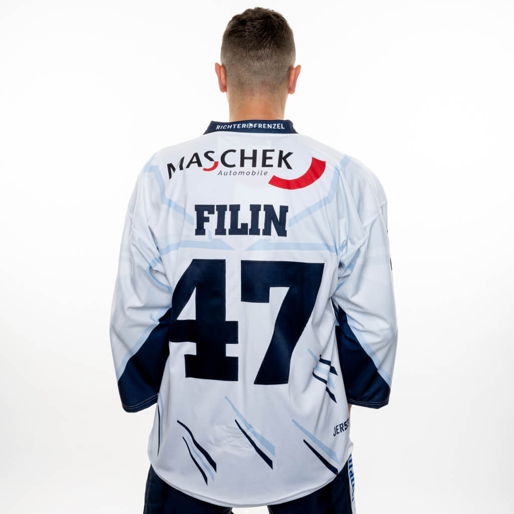Name,Nummer und alle Logos auf dem Trikot sind direkt in den Stoff gedruckt
